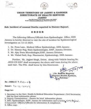 - December 8, 2024: Fazal Hussain (40) died at GMC Rajouri. His daughters Farmana (7) and Rabia Kausar (14) passed away while being transported to Jammu, followed by his son Ruksan Ahmed (10) at SMGS Hospital.